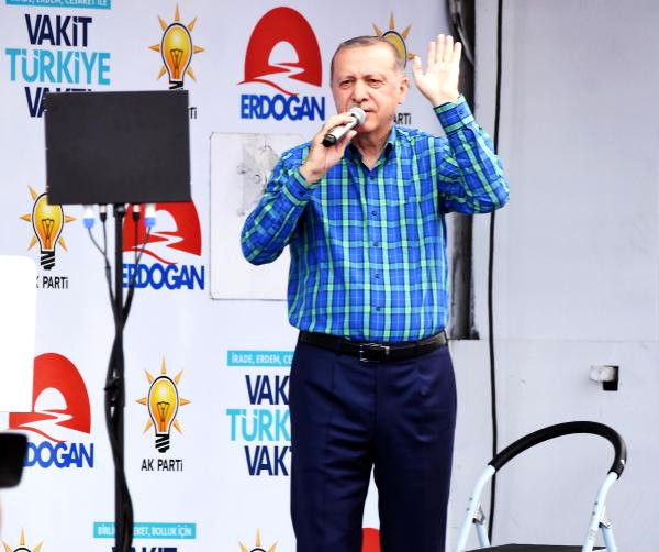 Erdoğan, konuşmasının sonunda, ‘Kardeşlerim geldik işin sonuna. 16 günümüz var. Çok çalışmaya kapı kapı dolaşmaya var mıyız’ diyerek toplu ant aldı. – HATAY