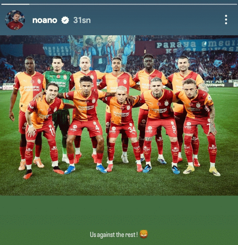 Trabzonspor maçındaki birinci 11 fotoğrafını paylaşan Hollandalı oyuncu, “Herkese karşı biz!” notuyla göndermede bulundu.